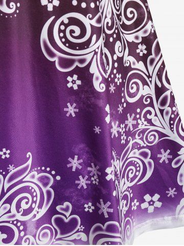 B*****b5Plus Size Tribal Print Ruched Skirted T-shirtColor: PURPLE Size: 3XBeautiful screen print! The fabric is soft and comfortable, perfect fit, shipped fast and packaged nicely. High quality design and made very well!