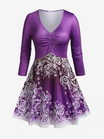 B*****b5Plus Size Tribal Print Ruched Skirted T-shirtColor: PURPLE Size: 3XBeautiful screen print! The fabric is soft and comfortable, perfect fit, shipped fast and packaged nicely. High quality design and made very well!
