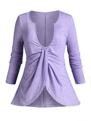 T*****y5Plus Size Two Tone Flounce High Low Hem 2 In 1 Tee with TieColor: LIGHT PURPLE Size: M | US 10Very nice sure that's good shipping fast will be ordering more as soon as more stuff is available in my size very very comfortable especially for winter time thank you l