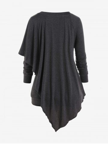 Plus Size V Neck Asymmetrical Ruffle Overlay Tee - Dark Gray - 1x | Us 14-16