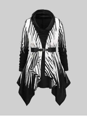 j*****95Plus Size White Black Stripes Zebra Print Ruched Belt Handkerchief T-shirtColor: BLACK Size: 3X | US 22-24very nice ,comfy I love the style