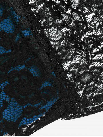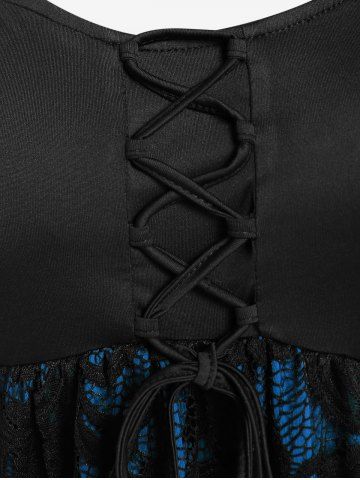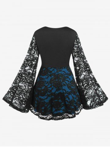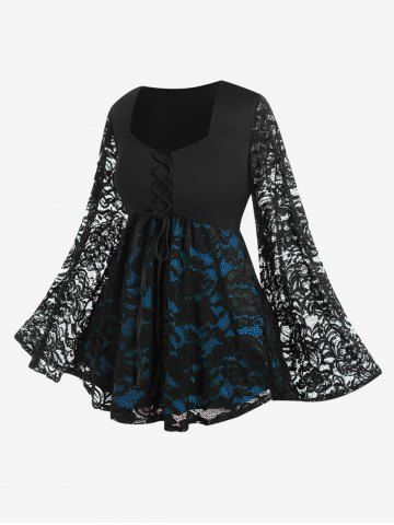 Witch Halloween Costume Lace Flare Sleeves Lace-up Two Tone T-shirt