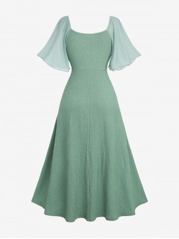 Plus Size Chiffon Sleeves Textured Tied Butterfly Decor Strap Pockets A Line Dress - Green - 2x | Us 18-20