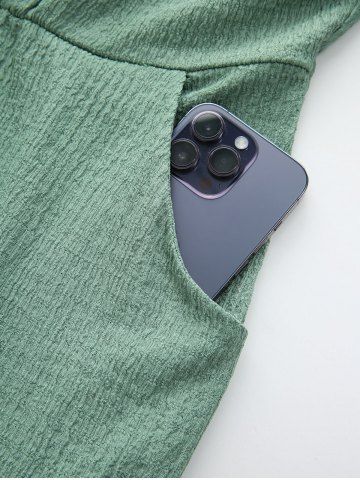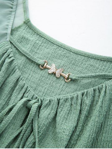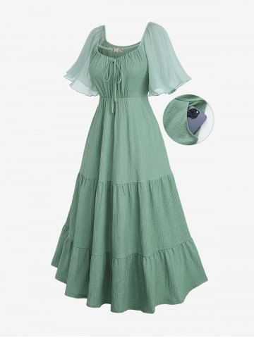 Plus Size Chiffon Sleeves Textured Tied Butterfly Decor Strap Pockets A Line Dress - Green - 4x | Us 26-28
