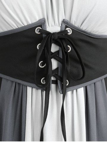 p*****e5Plus Size Medieval Renaissance Cold Shoulder Puff Sleeves Contrast Colorblock Lace Up Belted Ruched A Line DressColor: MULTI-F Size: 1X | US 14-16I love wearing this to D&D in-person sessions. Bard life.
