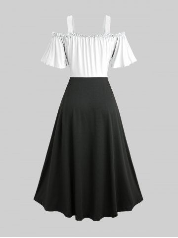 Plus Size Medieval Renaissance Cold Shoulder Ruched Ruffles Colorblock Lace Up Belted Vintage Corset A Line Dress - Black - 1x | Us 14-16