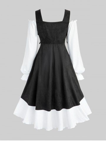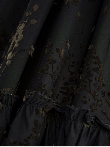 Plus Size Floral Flocking Ruffles Lace Up Poet Sleeves Cold Shoulder High Low Dress - Black - 1x | Us 14-16