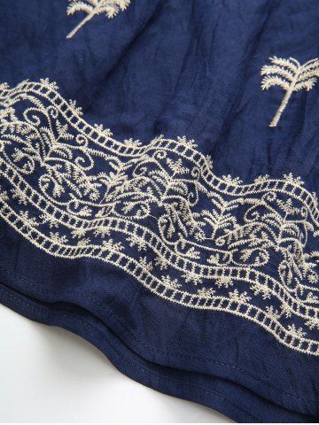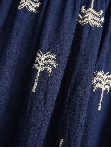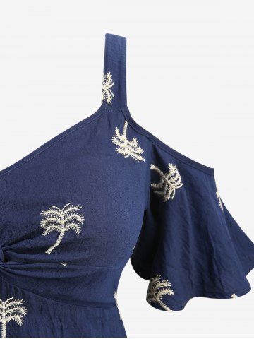 Plus Size Floral Pattern Coconut Tree Embroidery Twist Cold Shoulder Dress - Deep Blue - 4x | Us 26-28