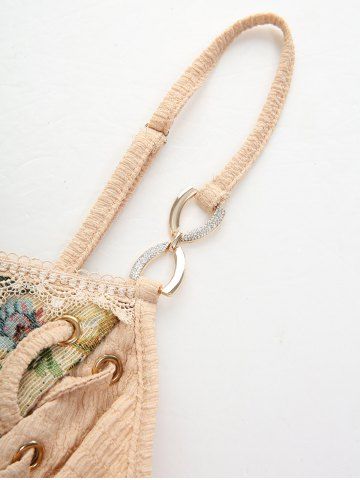 Plus Size Flowers Leaf Print Lace Up Pocket Textured Cami Dress - Beige - 4x | Us 26-28