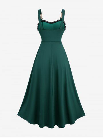 Plus Size Gothic Spider Web Flocking Mesh Lace Trim Asymmetrical Ruffles Hem Tank Dress - Green - 4x | Us 26-28