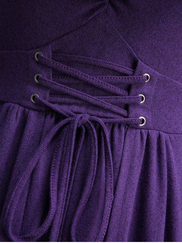 Plus Size Grommets Lace Up Mesh Flare Sleeves Cowl Neck Layered Dress - Purple - L | Us 12