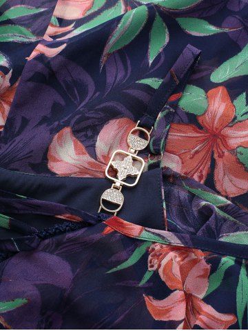 Plus Size Hibiscus Flower Print Lace Trim Lattice Braided Ruffles Tulip Hem Cold Shoulder High Low Dress - Deep Blue - 2x | Us 18-20