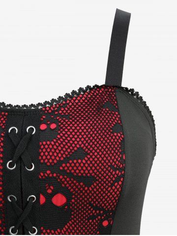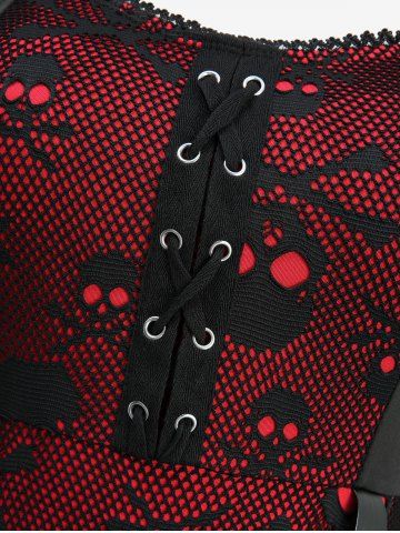 Plus Size Hollow Out Skull Fishnet Lace-up Grommets Lace Trim High Low Tank Dress - Red - 3x | Us 22-24