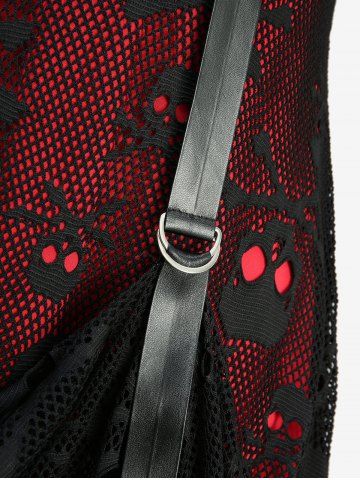 Plus Size Hollow Out Skull Fishnet Lace-up Grommets Lace Trim High Low Tank Dress - Red - 4x | Us 26-28