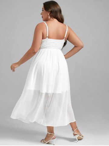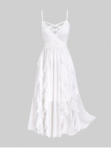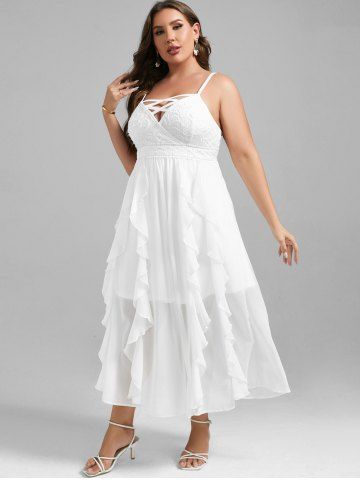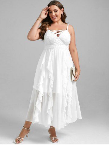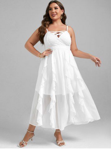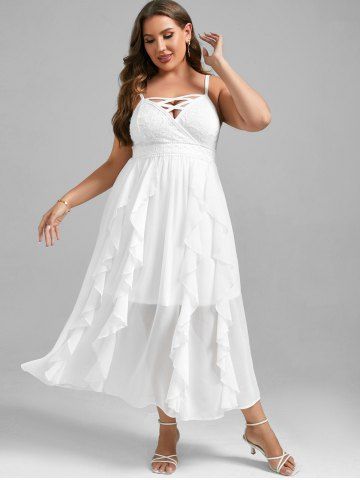 Plus Size Lace and Chiffon Ruffled Crisscross Maxi Sleeveless Wedding Dress - White - 2x | Us 18-20