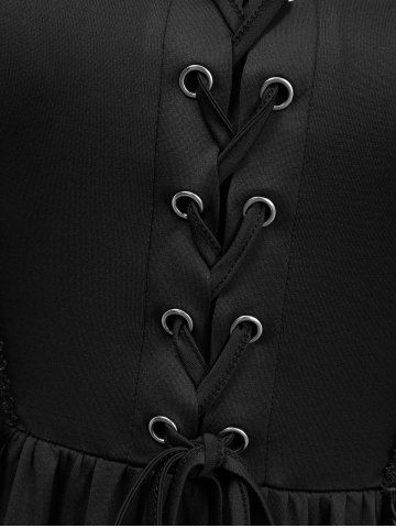 Plus Size Lace-up Grommets Lace Trim Rose Flower Velvet Dress - Black - L | Us 12