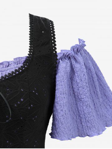 Plus Size Lace-up Hollow Out Butterfly Lace Trim Ruffles Zipper Cold Shoulder Tank Dress - Purple - 3x | Us 22-24