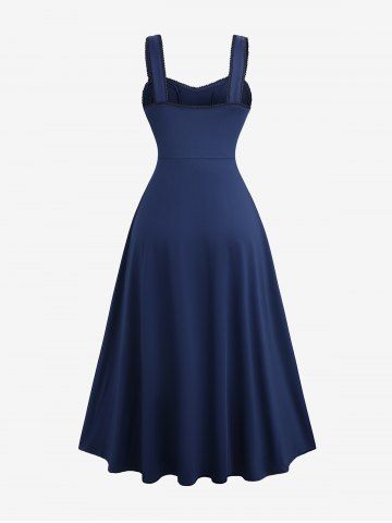 Plus Size Lace-up Panel Floral Embroidery Lace Trim Hollow Out Hem Tank Dress - Deep Blue - 1x | Us 14-16
