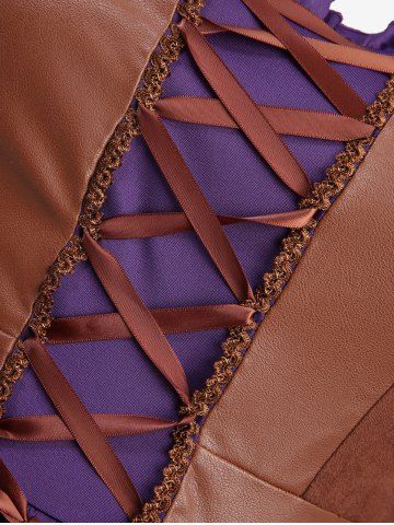 R*****r5Gothic Halloween Plus Size Grommets Lace-up Skulls Flocking Mesh Patchwork Ruffles Flare Sleeve Medieval Renaissance DressColor: BLACK Size: 2X | US 18-20This dress fit perfectly and was so comfortable to wear. I layered it with the black and purple hooded dress and received many compliments