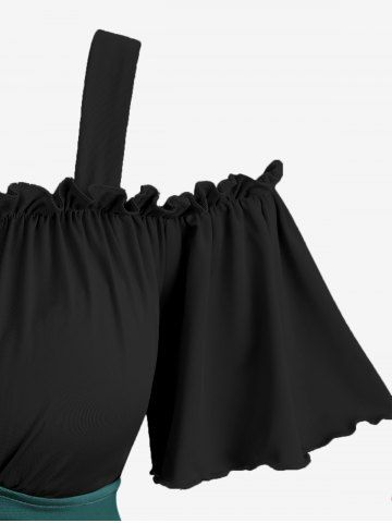 Plus Size Medieval Renaissance Cold Shoulder Ruched Ruffles Colorblock Lace Up Belted Vintage Corset A Line Dress - Dark Turquoise - L | Us 12