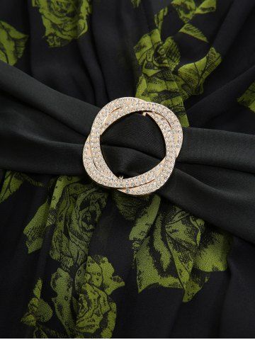 Plus Size Rose Flower Print Surplice Ruched Buckle Midi Dress - Black - 3x | Us 22-24