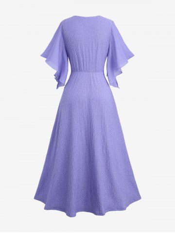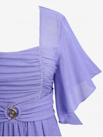 Plus Size Ruched Buckle Butterfly Sleeves Plisse Dress - Light Purple - 1x | Us 14-16