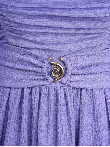 Plus Size Ruched Buckle Butterfly Sleeves Plisse Dress - Light Purple - 3x | Us 22-24