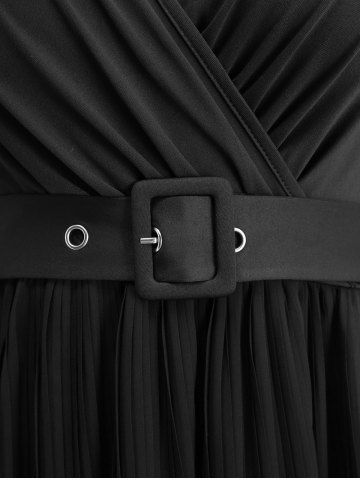 Plus Size Ruched Surplice Ruffles Textured Tank Dress With Buckle Belt - Black - 1x | Us 14-16