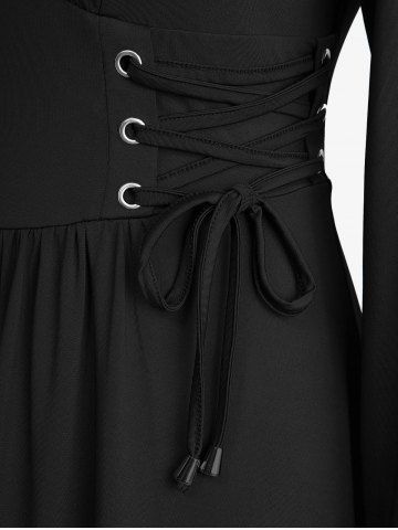 Plus Size Solid Color Lace Up Ruffles Ruched Poet Sleeves Dress - Black - 4x | Us 26-28