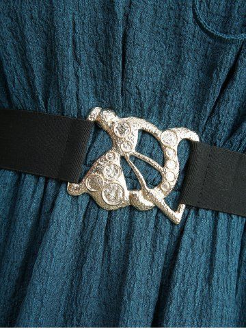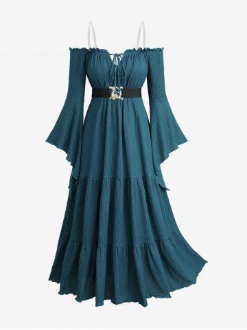 Plus Size Solid Textured Flare Sleeve A Line Dress with Removable Belt and Shoulder Strap - Deep Blue - 4x | Us 26-28