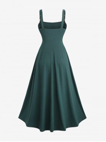 Plus Size Topstitching Cinched Ruched Grommets Buckle Tank Dress - Deep Green - 3x | Us 22-24
