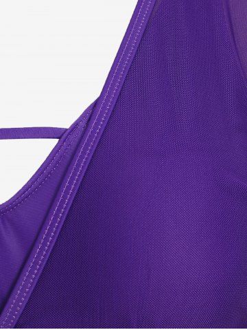Plus Size Ruched Mesh Sleeves One-piece Swimsuit - Purple - M | Us 10