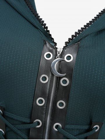 Plus Size Lace-up Grommets Hooded Lace Trim Split Coat - Deep Green - 2x | Us 18-20