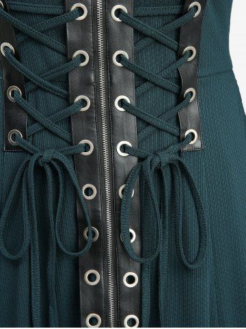 Plus Size Lace-up Grommets Hooded Lace Trim Split Coat - Deep Green - 4x | Us 26-28