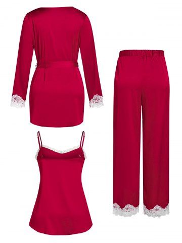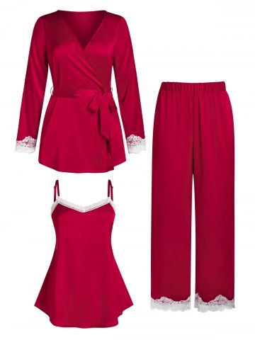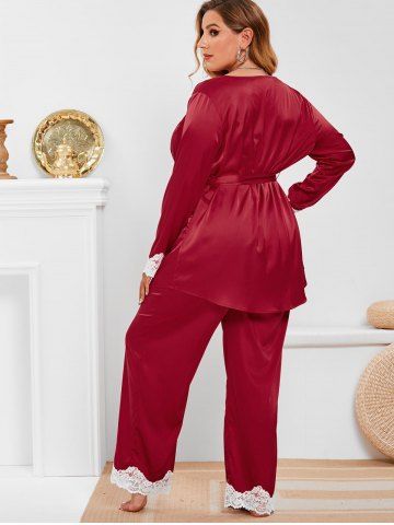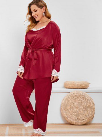 j*****l5Color: RED Size: 2XThese satin pajamas feel soft and are a bit stretchy. Perfect for Christmas morning, or really anytime. True to size. There are 3 pieces, the tank, the pants and the robe. I recommend these