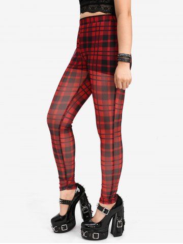 Gothic Elastic Waist Plaid Skinny Pants - Red - 3x | Us 22-24
