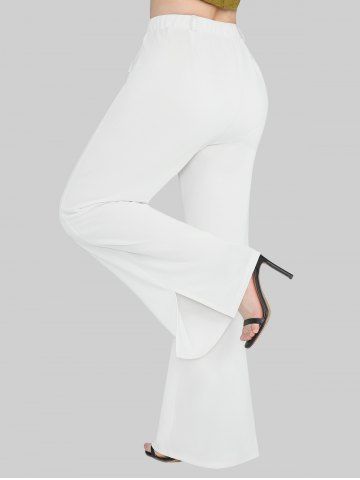 Plus Size Button Slant Pocket Split Side Solid Wide Leg Pants - Crystal Cream - L | Us 12