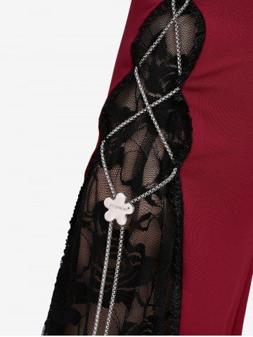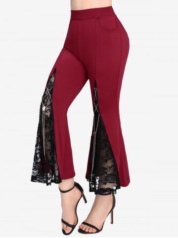 a*****w4Plus Size Floral Lace Pockets Chains Braided Flare PantsColor: DEEP RED Size: 2X | US 18-20one two three four five six seven eight nine ten