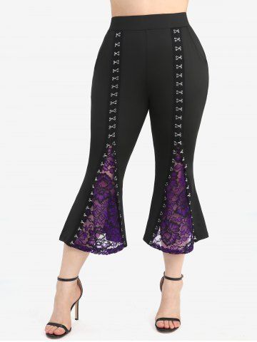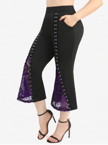B*****a5Plus Size Flower Hollow Out Lace Patchwork Pockets Buckles Flare PantsColor: BLACK Size: 3X | US 22-24Perfect size