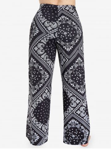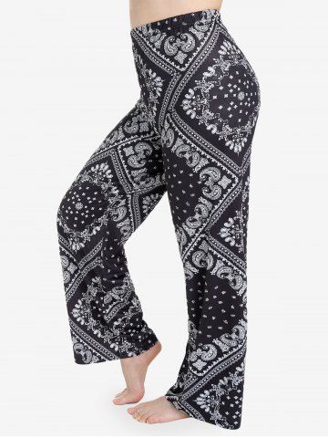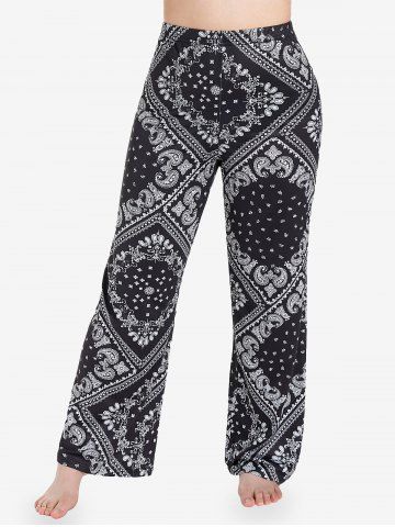 Plus Size Hanky Paisley Printed Pull On Wide Leg Pants - Black - 2x | Us 18-20