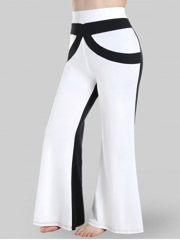 Plus Size High Waist Colorblock Bell Bottom Pants - White - 3x | Us 22-24