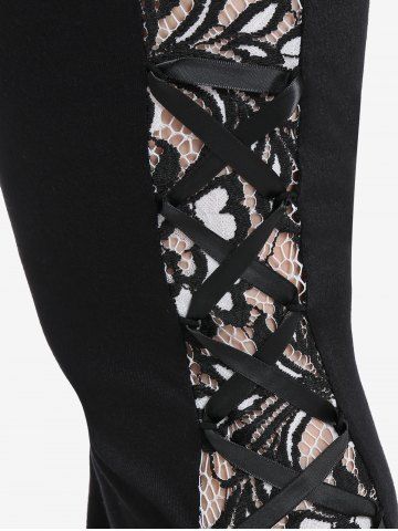 Plus Size High Waisted Lace Insert Bell Bottom Pants - Black - 4x | Us 26-28