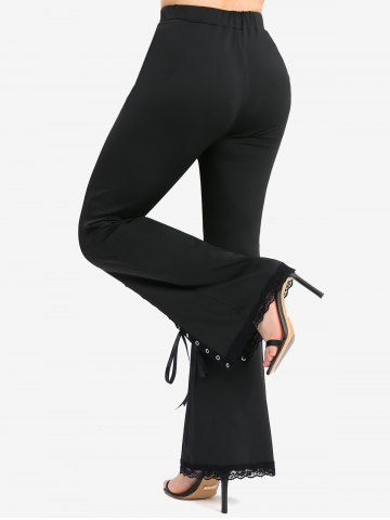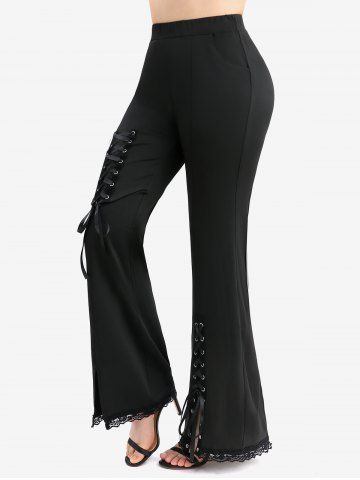 R*****r5Plus Size Lace Trim Lace-up Split Pockets Solid Flare PantsColor: BLACK Size: 3X | US 22-24These look better on. I was a little sketchy when first arrived but they are super stretchy and very comfortable. A little long and I stand 5'5 but not so long you can't wear them.