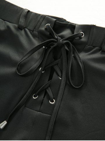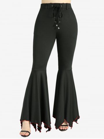Pants > Plus Size Lace Up Contrast Piping Solid Elastic Waist Flare Pants