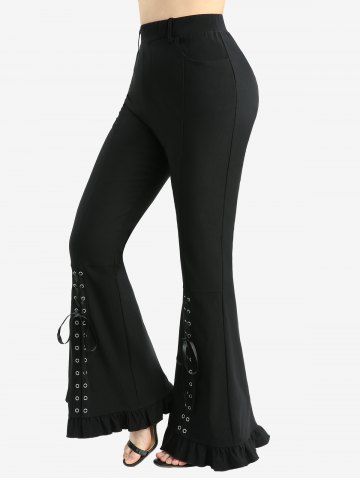 Plus Size Lace Up Pockets Ruffles Flare Pants - Black - 3x | Us 22-24