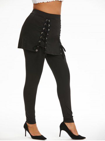 Plus Size Lace Up Skirted Pull On Pants - Black - 1x | Us 14-16