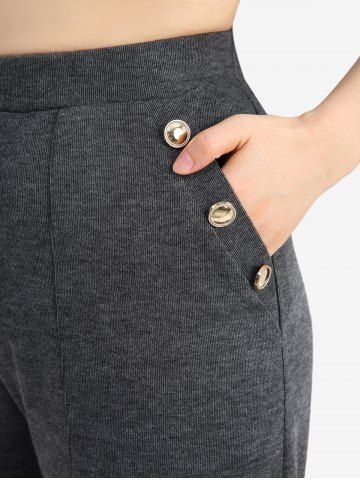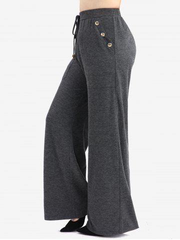 Plus Size Mock Buttons Pocket Marled Drawstring Wide Leg Pants - Gray - M | Us 10