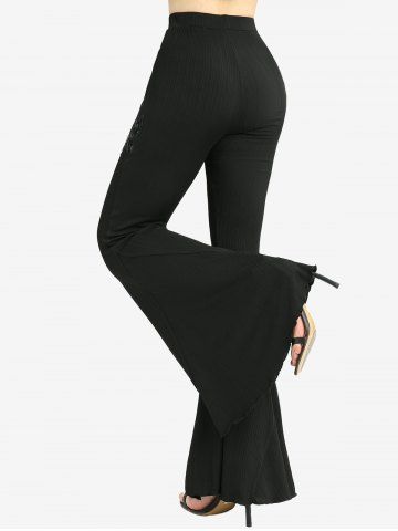 Sequins Butterfly Applique Ribbed Pockets Solid Flare Pants - Black - Xxl