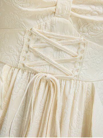Gothic Plus Size Rose Flower Embossed Textured Lace Up Ruffles Ruched A Line Cami Dress - Beige - 5x | Us 30-32
