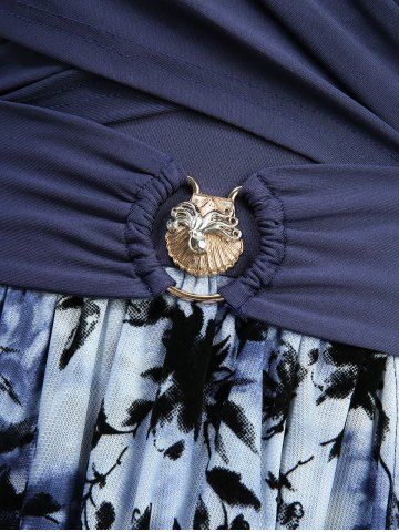 Plus Size Flowers Tie Dye Print Ruched Shell Buckle Cold Shoulder High Low Tank Dress - Blue - 2x | Us 18-20